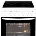 Тип конфорок: электрические • Рабочая поверхность: стеклокерамика • Тип духовки: электрическая • Размеры (ШxВxГ): 600x840x500 мм • Цвет: белый, вишнёвый, желтый, зеленый, коричневый, черный • Конфигурация электрических конфорок: 2 x 165 мм - 1200 g 2 x 200 мм - 1700 g • Электрические конфорки: всего - 4 • Максимальная температура духовки: 300 °С • Гриль: есть, электрический • Подсветка: есть