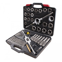 КомплектацияМетчики - 20 шт; Плашки - Ø посадки 38 мм (1-1/2") - 14 шт; Плашки - Ø посадки 51 мм (2") - 6 шт; Экстракторы - 5 шт; Кернер автоматический - 1 шт; Метчикодержатель с Т-образной рукояткой для малых размеров - 1 шт; Метчикодержатель для больших размеров - 1 шт; Плашкодержатель 51 мм (2") с адаптером 1-1/2" – 1 шт; Адаптер для плашкодержателя 38 мм (1-1/2") – 1 шт; Отвертка - 1 шт