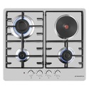 Поверхность: варочная панель • Тип поверхности: комбинированный • Рабочая поверхность: нерж.сталь • Число конфорок: 4 • Установка: независимая • Электрические конфорки: чугунные; всего - 1 (1 конфорка быстрого разогрева) • Конфигурация электрических конфорок: 1 x 1500 • Газовые конфорки: всего - 3 • Газ-контроль конфорок: есть • Тип управления: механическое • Переключатели: поворотные