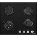газовая на 4 конфорки • закаленное стекло • мощность: 7400 Вт • газ-контроль • решетки: эмалированная сталь • независимая установка