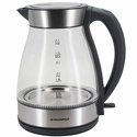 Тип: чайник • Объем: 1.7 л • Мощность: 2200 Вт • Материал корпуса: металл, стекло • Цвет: нерж. сталь • Нагревательный элемент: скрытый • Указатель уровня воды: есть • Подсветка воды: есть • Автоотключение при закипании: есть • Блокировка включения без воды: есть • Вращение на 360 градусов: есть • Отсек для хранения шнура: есть • Длина шнура питания: 0.75 см