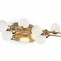 Бра стиля техно для гостиной, кабинета или спальни имеет размеры 420x90x143 мм. Арматура светильника окрашена в золотой цвет. Лампы в комплекте - светодиодные [LED]. В светильнике применяются светодиодная LED-лампа. Цвет плафонов - белый, с матовой поверхностью. Материал плафонов - полимер. Класс электробезопасности - I, степень пылевлагозащиты (IP) - 20. Максимальная мощность лампы (Вт) - 13. Светильник размещается на стене.