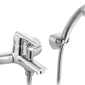 Назначение - Для ванны и душа, Термостат - Нет, S-образные эксцентрики - Есть, Материал корпуса - Латунь, Тип подводки - Жесткая, Форма излива - Традиционная, Встраиваемый - Нет, Поворотный излив - Нет, Присоединительный размер - 1\2", Количество монтажных отверстий - 2, Тип - Однозахватный, Покрытие - Хром, Аэратор - Есть, Цвет - Серебристый, Комплектация - Держатель душевой лейки, душевой шланг, ручной душ, Ширина - 18.2, Донный клапан - Нет, Длина излива - 169
