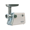 Реверс: есть • Насадки-решетки: Есть, 3 штуки • Прочие насадки: для приготовления кеббе • Резиновые ножки: есть • Лоток для подачи продуктов: есть, нерж.сталь • Цвет корпуса: белый • Материал корпуса: нерж.сталь, пластик • Защита от перегрузки: есть • Максимальная мощность: 1500 Вт
