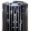 Закрытая кабина, полностенная, двери раздвижные, материал поддона: акрил, материал стенок: стекло, тропический душ, вертикальный гидромассаж, габариты (ШхВхД): 90x220x90 см