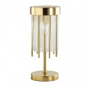 Настольная лампа декоративная стиля лофт для гостиной, кабинета или спальни имеет размеры 160x400 мм. Арматура светильника окрашена в золотой цвет. Лампы в комплекте - отсутствуют. В светильнике применяются лампы накаливания или светодиодная LED-лампа. Цвет плафонов - неокрашенный, с прозрачной поверхностью. Материал плафонов - стекло. Класс электробезопасности - II, степень пылевлагозащиты (IP) - 20. Максимальная мощность лампы (Вт) - 40. Светильник размещается на столе.