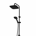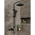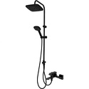 Душевая система. В комплекте: однозахватный смеситель для ванны с изливом, верхний душ d265 мм и ручной душ 110 мм с режимом самоочистки, регулируемый по высоте и наклону держатель, душевой шланг 1,5 м, керамический дивертор. Штанга с возможностью установки в старые отверстия. Цвет: черный матовый.