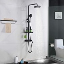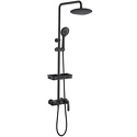 Устройство: душевая система • Смеситель: джойстик • Верхний душ (тропический): размер 230 мм, настройки 1 шт • Комплектация: ручной душ, верхний душ, смеситель, стойка, шланг, крепление ручного душа, полка