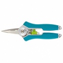 Предназначен для ухода за цветами и растениями. Цветочный секатор с прямым резом. Удобные металлические рукоятки имеют резиновые вставками и оснащены боковым фиксатором. Основание выполнено из нержавеющей стали. Лезвия изготовлены из японской стали SK5, закалены и остро заточены. Тефлоновое покрытие лезвий обеспечивает легкость реза и максимальную защиту от коррозии.
