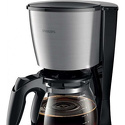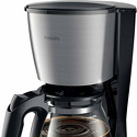 Тип: капельная • Мощность: 1000 Вт • Используемый кофе: молотый • Объем резервуара для воды: 1.2 л • Встроенная кофемолка: нет • Объем кофейника: с индикатором уровня • Подача горячей воды: нет • Таймер: есть • Автоматическая декальцинация: нет • Автоотключение: есть • Дисплей: есть, с подсветкой • Противокапельная система: есть • Материал корпуса: металл, пластик • Цвет корпуса: нерж. сталь, черный