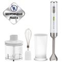 КомплектацияБлендерная насадка – 1 шт.Венчик - 1 шт.Переходник венчика – 1 шт.Стакан – 1 шт.Крышка для стакана– 1 шт.Крышка измельчителя – 1 шт.Нож измельчителя – 1 шт.Чаша измельчителя – 1 шт.Подставка для аксессуаров – 1 шт.Зарядное устройство (адаптер) с USB кабелемРуководство по эксплуатации – 1 шт.