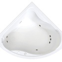 Материал: акрил • Расположение: отдельно стоящая, угловая конструкция • Форма: четверть круга • Объем: 260 л • Количество мест: одноместная • Гидромассаж: есть, 9 форсунок • Подсветка: есть • Размеры (ДxШxВ): 125x125x47 см