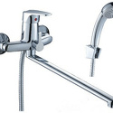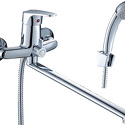 Присоединительный размер - 1\2", Ширина - 21.5, Покрытие - Хром, Тип - Однозахватный, Термостат - Нет, Количество монтажных отверстий - 2, Назначение - Для ванны и душа, Форма излива - Традиционная, Поворотный излив - Да, Материал корпуса - Латунь, Встраиваемый - Нет, Тип подводки - Жесткая, S-образные эксцентрики - Есть, Аэратор - Есть, Цвет - Серебристый, Глубина - 41.8, Комплектация - Держатель душевой лейки, душевой шланг, ручной душ, Донный клапан - Нет, Длина излива - 404