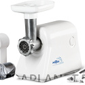 Номинальная мощность: 300 Вт • Реверс: нет • Производительность: 0.58 кг/мин • Вес: 3.5 кг • Насадки-решетки: Есть • Насадки для шинковки: Есть • Прочие насадки: для приготовления колбас, для приготовления томатного сока • Соковыжималка: есть • Резиновые ножки: есть • Лоток для подачи продуктов: есть, пластик • Цвет корпуса: белый • Материал корпуса: пластик • Максимальная мощность: 800 Вт
