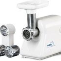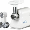 Номинальная мощность: 300 Вт • Производительность: 0.58 кг/мин • Вес: 3.5 кг • Насадки-решетки: Есть • Насадки-терки: Есть • Насадки для шинковки: Есть • Прочие насадки: для приготовления кеббе, для приготовления колбас • Резиновые ножки: есть • Лоток для подачи продуктов: есть, пластик • Цвет корпуса: белый • Материал корпуса: пластик • Максимальная мощность: 800 Вт