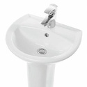 Материал: фаянс • Установка: на пьедестале, пьедестал в комплекте • Форма: полукруглая • Отверстия для монтажа смесителя: 1 отверстие по центру • Отверстие контроля перелива: есть • Глубина: 47.5 см • Ширина: 55 см • Вес: 21 кг