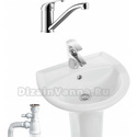 Производитель: Санита Модель: Аттика-55 - материал: фаянс - установка: на пьедестале, пьедестал в комплекте - форма: полукруглая - отверстия для монтажа смесителя: 1 отверстие по центру - отверстие контроля перелива: есть Описание