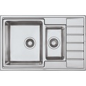 Форма чаши: прямоугольная • Материал: нерж. сталь • Количество чаш: 1 основная, 1 дополнительная • Установка: врезная • Крыло: есть • Глубина чаши: 21.5 см • Измельчитель пищевых отходов: нет • Размеры: 78x50 • Мотажное отверстие: 78x50 • Диаметр сливного отверстия: 3 "