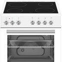 Тип конфорок: электрические • Рабочая поверхность: стеклокерамика • Тип духовки: электрическая • Размеры (ШxВxГ): 600x850x600 мм • Цвет: белый • Электрические конфорки: всего - 4 • Индикаторы остаточного тепла: есть • Объем духовки: 58 л • Максимальная температура духовки: 250 °С • Конвекция: есть • Гриль: есть, электрический • Очистка духовки: традиционная • Подсветка: есть • Количество стекол дверцы духовки: 2