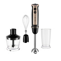Комплектация- блок электродвигателя;- чаша измельчителя с крышкой;- стакан для смешивания;- насадка-блендер;- насадка-венчик;- переходник для насадки-венчика;- S-образный нож измельчителя;- руководство по эксплуатации;- сервисная книжка.