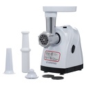 Реверс: есть • Производительность: 2.2 кг/мин • Размеры (ШxВxГ): 154x304x260 • Насадки-решетки: Есть, 3 штуки (3 мм, 7 мм, 5 мм) • Прочие насадки: для приготовления кеббе, для приготовления колбас • Резиновые ножки: есть • Лоток для подачи продуктов: есть, пластик • Цвет корпуса: белый, черный • Материал корпуса: пластик • Защита от перегрузки: есть • Максимальная мощность: 1800 Вт