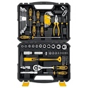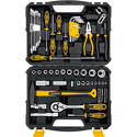 Комплектация- Комбинированные ключи, 8 шт.- Трещотка 3/8"- Удлинитель 3/8"- Битодержатель с двухкомпонентной рукояткой 1/4"- Торцовые головки 3/8", 14 шт.- Биты, 30 шт.- Отвертки с двухкомпонентной рукояткой, 4 шт.- Имбусовые ключи, 9 шт.- Бокорезы- Длинногубцы- Плоскогубцы комбинированные- Ручка для прецизионной отвертки- Двухсторонние жала для прецизионной отвертки, 4 шт.- Рулетка- Молоток-гвоздодер с фибергласовой рукояткой