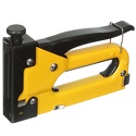 Пистолет скобозабивной от производственной компании "STAYER", серии "MASTER" ("Мастер"). Корпус инструмента изготовлен из металла, элементы механизма металлические. Ручка разработана с учетом анатомических особенностей руки, обеспечивая при выполнении работы удобство. Пистолет оборудован захватом рычага для безопасного хранения. Предложенная модель пистолета снабжена механизмом регулировки ударной силы при выполнении крепительных работ с различными материалами.