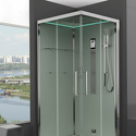 Закрытая кабина, полностенная, двери раздвижные, материал поддона: акрил, материал стенок: стекло, турецкая баня, тропический душ, вертикальный гидромассаж, габариты (ШхВхД): 100x220x100 см