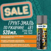 770 руб. В магазин Грунт-эмаль Vixen VX-517040 по ржавчине серое окно 4в1 (RAL 7040) 520 мл