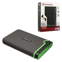 Transcend StoreJet 25M3 (TS1TSJ25M3) — переносной жесткий диск с емкостью в один терабайт, подключается при помощи провода с разъемом, поддерживающим модификацию USB 3.0. Позволяет сохранять и распространять информацию со скоростью потока до 5 Гб в секунду. Имеет уникальную кнопку One Touch auto-backup, позволяющую сделать резервное сохранение информации. Имея SATA-интерфейс, способен совмещать рабочие процессы с осями компаний Microsoft, Apple и другими. Выполнен из черного пластика со стильной зеленой вставкой и с темно-серым прорезиненным матовым покрытием, исключающим вредоносное воздействие колебаний, толчков, пыли, влаги и температуры при транспортировке.