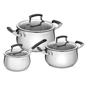 Состав наборакастрюля (2 шт), ковш (1 шт), крышка (3 шт)Объем посуды: 1.9 л, 3.6 л, 6.1 л
