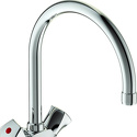 Комплектация - Смеситель, инструкция, набор креплений, паспорт, гарантийный талон, Назначение - Для мойки, Тип подводки - Гибкая, Присоединительный размер - 1\2", Материал корпуса - Латунь, Высота - 27.4, Аэратор - Есть, Ширина - 13.6, Покрытие - Хром, Система быстрого монтажа - Да, Количество монтажных отверстий - 1, Цвет - Серебристый, Поворотный излив - Да, Тип - Двухзахватный, Форма излива - Традиционная, Длина излива - 200, Высота излива - 142, Глубина - 23.5