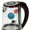 Очень сильный запах пластика от воды, растрескалась пластмасса снизу стеклянной колбы. Спустя год перестал включаться, помогало постукивание по дну чайника.