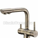 Назначение: кухонный • Конструкция: однорычажный • Монтаж: горизонтальный • Клапан: керамический • Материал: латунь, покрытие - бронза • Подводка: гибкая • Монтажные отверстия: 1 отверстие • Форма излива: традиционная • Душевая лейка в комплекте: нет • Аэратор: есть