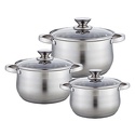 В наборе: кастрюли, 3 шт • Размер: от 18 см, до 24 см • Объем: от 2.9 л, до 6.6 л • Материал: сталь