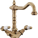 Назначение: для умывальника • Конструкция: с раздельными клапанами • Монтаж: горизонтальный • Клапан: керамический • Материал: латунь, покрытие - двухцветный • Монтажные отверстия: 1 отверстие • Форма излива: традиционная • Душевая лейка в комплекте: нет • Донный клапан в комплекте: есть