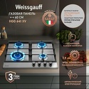 Производитель: Weissgauff Модель: HGG 641 XV - поверхность: варочная панель - тип поверхности: газовая - рабочая поверхность: нерж.сталь - число конфорок: 4 - установка: независимая Описание
