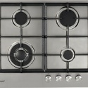Поверхность: варочная панель • Тип поверхности: газовая • Рабочая поверхность: нерж.сталь • Число конфорок: 4 • Установка: независимая • Газовые конфорки: всего - 4 (1 конфорка "Тройная корона") • Газ-контроль конфорок: есть • Тип управления: механическое • Переключатели: поворотные • Электроподжиг: есть, автоматический • Размеры: 610x525x56 мм • Размер ниши для встраивания: 555x475 мм • Цвет: панель - нерж.сталь