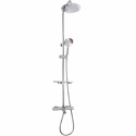 Устройство: душевая система • Смеситель: термостатический • Ручная лейка: настройки 3 шт • Верхний душ: размер 225 мм, настройки 1 шт • Комплектация: ручной душ, смеситель, стойка, шланг, крепление ручного душа, полка