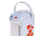 Тип: термопот • Объем: 5.5 л • Мощность: 800 Вт • Материал корпуса: металл, пластик • Цвет: белый • Нагревательный элемент: скрытый, покрытие - нержавеющая сталь • Указатель уровня воды: есть • Индикация включения: есть • Блокировка включения без воды: есть • Вес: 2.65 кг