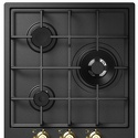 Поверхность: варочная панель • Тип поверхности: газовая • Число конфорок: 3 • Установка: независимая • Газовые конфорки: всего - 3 • Газ-контроль конфорок: есть • Тип управления: механическое • Переключатели: поворотные • Электроподжиг: есть, автоматический • Размеры: 450x510x38 мм • Размер ниши для встраивания: 415x490 мм • Цвет: панель - антрацит