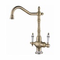 Назначение: кухонный • Конструкция: однорычажный • Монтаж: горизонтальный • Материал: покрытие - бронза • Монтажные отверстия: 1 отверстие • Форма излива: традиционная • Душевая лейка в комплекте: нет • Донный клапан в комплекте: есть