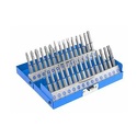 КомплектацияPH1, PH2, PH3;PZ1, PZ2, PZ3;T6, T7, T8, T9, T10, T15, T20, T25, T27, T30;HEX2, HEX2.5, HEX3, HEX4, HEX5;DOUBLE PIN: 4, 6, 8;TRI-WING: 1, 2, 3;TORQ-SET: 6, 8;ROBERTSON: 0.